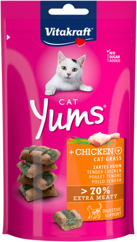 Les Cat Yums sont non seulement irrésistiblement délicieux, mais aussi fonctionnels. Grâce à l'herbe à chat et à l'inuline, ils soutiennent immédiatement les intestins de votre chat. Ce snack pour chat Vitakraft est soigneusement préparé avec les meilleurs ingrédients et sans sucres ajoutés.