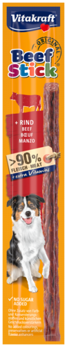 Tant les chiens que leurs maîtres adorent le Beef Stick Vitakraft qui séduit par son excellente qualité, son odeur irrésistible, son goût inimitable et sa teneur très élevée en viandes. A donner comme récompense, friandise ou petit encas! Existe en différents goûts.