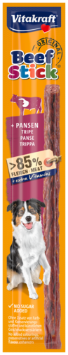 Tant les chiens que leurs maîtres adorent le Beef Stick Vitakraft qui séduit par son excellente qualité, son odeur irrésistible, son goût inimitable et sa teneur très élevée en viandes. A donner comme récompense, friandise ou petit encas! Existe en différents goûts.