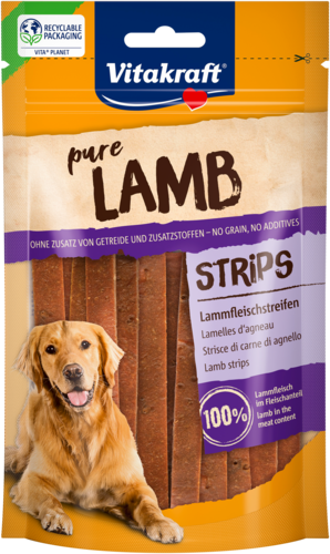 Votre chien remue-t-il la queue à la vue de viande ? Surprenez alors votre glouton avec Pure Lamb de Vitakraft. D'irrésistibles lanières d'agneau qui feront instantanément baver votre chien. Ce snack à la viande pour chiens ne contient aucun additif. Cela signifie ni sucres ajoutés, ni colorants artificiels, ni exhausteurs de goût, ni conservateurs.