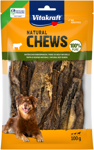 Votre chien commence à baver quand il sent les odeurs qui se dégagent de la cuisine ? Dans ce cas, votre chien bavera aussi devant les Natural Chews de Vitakraft Cette panse séchée a une odeur forte à laquelle le flair de votre chien ne pourra pas résister. Cette panse de bœuf naturelle est légèrement séchée pour encore plus de plaisir de mastication.