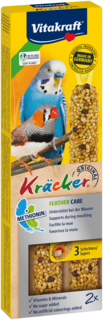 Tous les Kräcker® de Vitakraft® ont été développés avec des vétérinaires et des experts en oiseaux et sont idéalement adaptés aux besoins de chaque espèce d'oiseau.