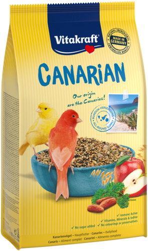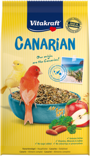 La nourriture pour oiseaux Vitakraft Homeland propose une alimentation pour canaris adaptée à l'espèce, appelée Canarian. Il s'agit d'un mélange varié avec le meilleur de la nature des îles Canaries, le pays du canari. La nourriture pour canaris spécifique à l'animal est un mélange d'ingrédients naturels et savoureux tels que des graines de canaris, des pommes et des dattes. Ce mélange a été élaboré avec soin par des vétérinaires et des experts et garantit des soins complets et optimaux pour les oiseaux. Votre oiseau recevra donc tous les nutriments, vitamines et minéraux essentiels.
