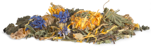 sous-produits d'origine végétale, fleur de souci 5,0%, persil déshydraté 5,0%, bleuet 1,0%, feuille d'ortie 4,0%, menthe poivrée 3,0%, substances minérales