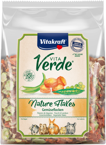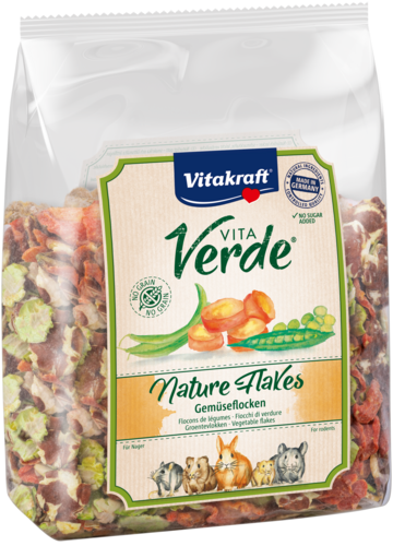 Vous voulez surprendre votre rongeur avec des flocons festifs sans sucres ajoutés ? Alors faites le bonheur de votre animal avec les flocons Vita Verde Nature de Vitakraft. Les flocons Vita Verde Nature avec légumes sont fabriqués à partir d'ingrédients naturels purs et peuvent être donnés comme collation ou avec l'alimentation principale. Ce snack salé offre une variété de flocons de haricots, de pois et de carottes qui sont irrésistiblement délicieux. Le snack pour rongeurs est facile à digérer et contient des vitamines et des minéraux naturels. Cette friandise ne contient ni céréales ni sucres ajoutés. En outre, les flocons Vita Verde Nature sont exempts de colorants, d'exhausteurs de goût et de conservateurs artificiels.