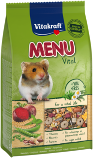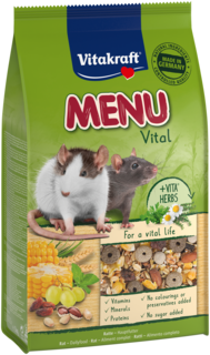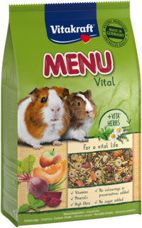 Vitakraft® MENU Vital mixen combineren smakelijke groenten en fruit met VITA® HERBS, zorgvuldig geselecteerde kruiden ter ondersteuning van het welzijn van uw knaagdier. Heerlijk én voedzaam, verpakt in een handig hersluitbaar vershoudzakje.
