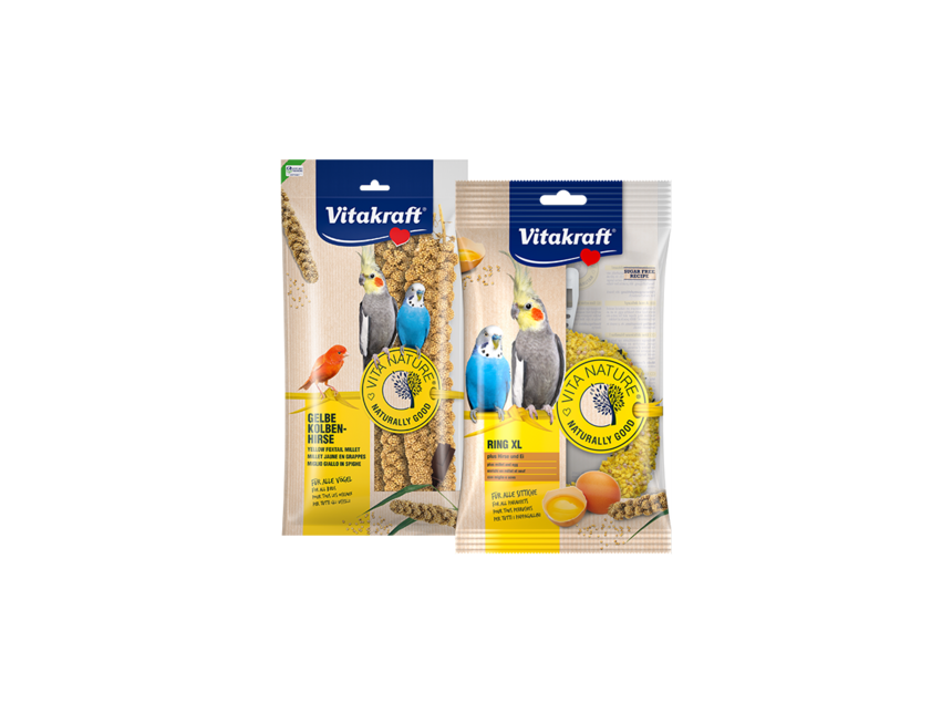Het Vitakraft® VITA NATURE® assortiment bestaat uit 100% natuurlijke producten én smakelijke snacks die je vogels op een soortspecifieke manier actief houden.