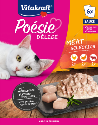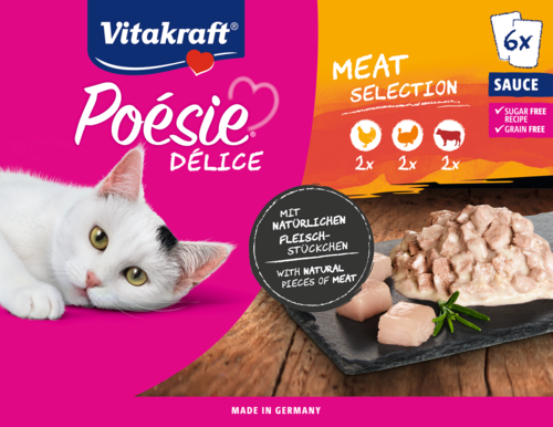 Is jouw kat een echte fijnproever? Met de Vitakraft® Poésie® Délice multipack heb je altijd genoeg lekkers in huis! Deze heerlijke stukjes vlees in een rijke saus bieden hem een gevarieerd menu met drie smakelijke varianten: kip, kalkoen en rundvlees. Ideaal voor elke dag een nieuwe smaaksensatie!