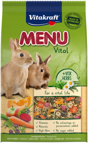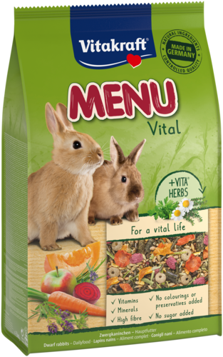 Menu Vital bevat een smaakvolle combinatie van granen, fruitige appel en heerlijke groente zoals aromatische pompoen. Een onweerstaanbare maaltijd waar jouw konijn keer op keer van zal smullen!