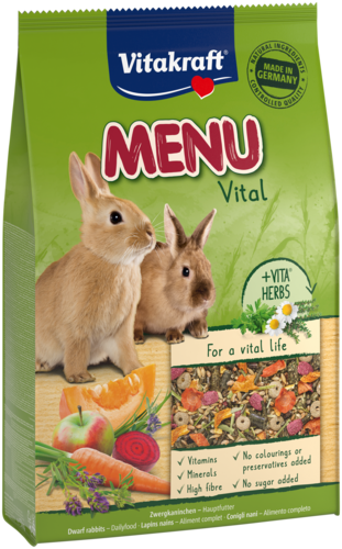 Geef jouw konijn de perfecte basis voor een gelukkig en vitaal leven met Menu Vital van Vitakraft. Dit uitgebalanceerde mengvoer bevat alles wat jouw pluizige vriend nodig heeft: van eiwitten en vetten tot essentiële vitamines en mineralen. Een complete en smakelijke maaltijd voor dagelijks genieten!