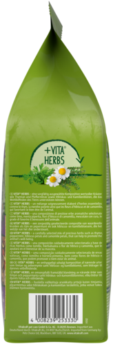 Het voer is verrijkt met VITA® HERBS: een zorgvuldig geselecteerde mix van gezonde kruiden zoals pepermunt, kamille en hibiscusbloemen. Deze ondersteunen niet alleen het welzijn van je konijn, maar maken het voer ook extra lekker.