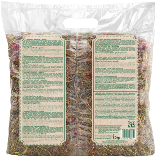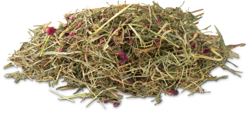 Samenstelling: hooi* (daarvan 50% Timothy) 97%, Rozenblaadjes* 3%. *=Natuurlijke ingrediënten