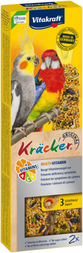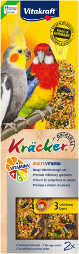 Wil je het immuunsysteem van je valkparkiet extra ondersteunen? De Vitakraft® Kräcker® Multi-Vitamin biedt niet alleen een heerlijke smaak, maar bevat ook waardevolle ACE-vitamines om tekorten te voorkomen en de weerstand te versterken. Dit in drie lagen gebakken graanmengsel zorgt voor langdurig knabbelplezier en helpt bij de natuurlijke snavelverzorging. De Kräckers zijn speciaal afgestemd op de voedingsbehoefte van valkparkieten, bevatten essentiële vitamines en worden bereid zonder toegevoegde suikers. Dankzij de handige cliphouder hang je ze eenvoudig in de kooi.