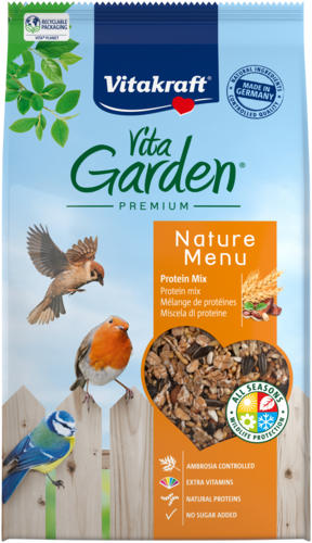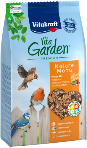 Wil je tuinvogels het hele jaar door ondersteunen? Vitakraft® Vita Garden strooivoer is een voedzame mix van zaden, dadels, rozijnen, pinda’s en dierlijke eiwitten, boordevol essentiële voedingsstoffen. Ideaal voor gebruik in een voederhuisje of als strooivoer op de grond.